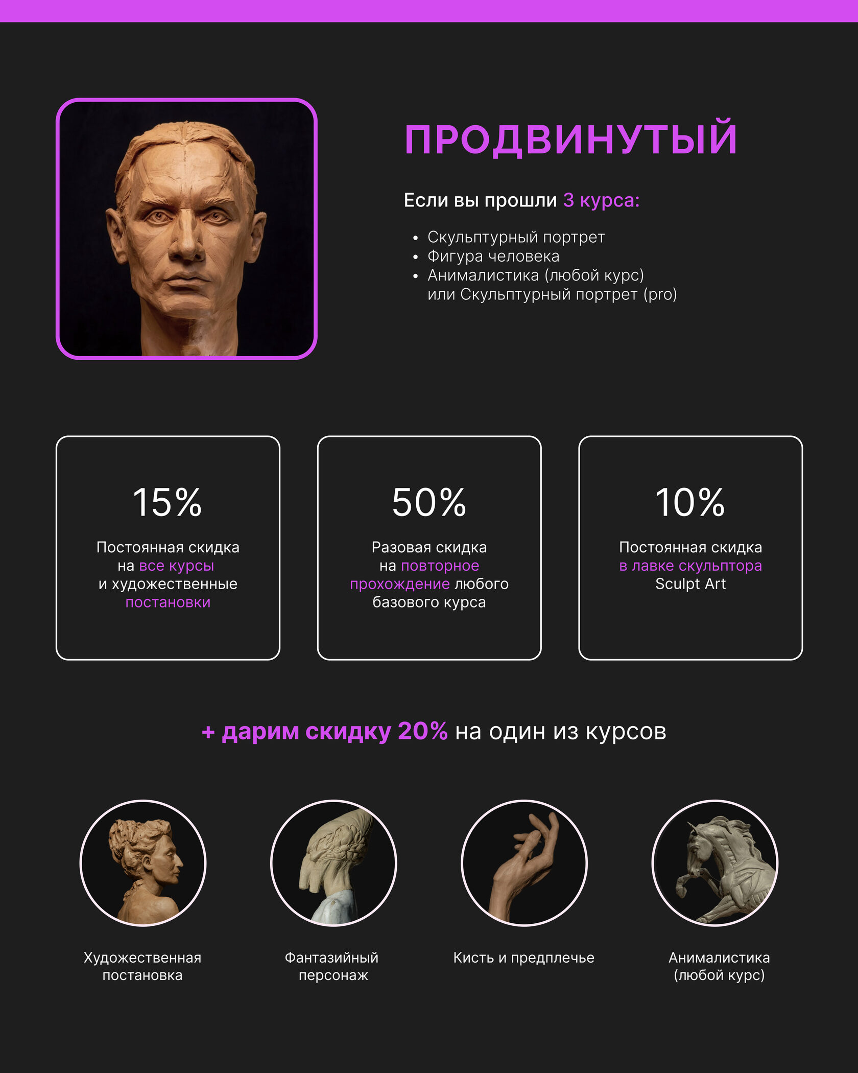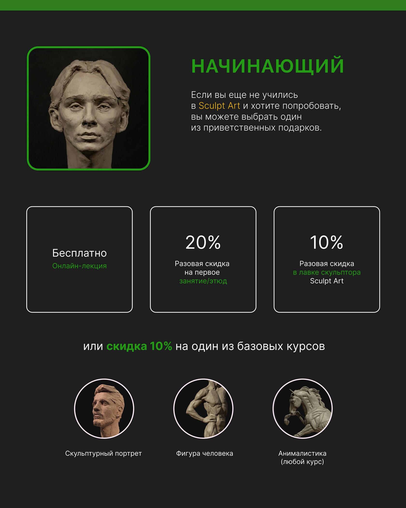 - Скидки, действующие ранее в Sculpt Art, прекращают своё действие 30 сентября 2025г.
