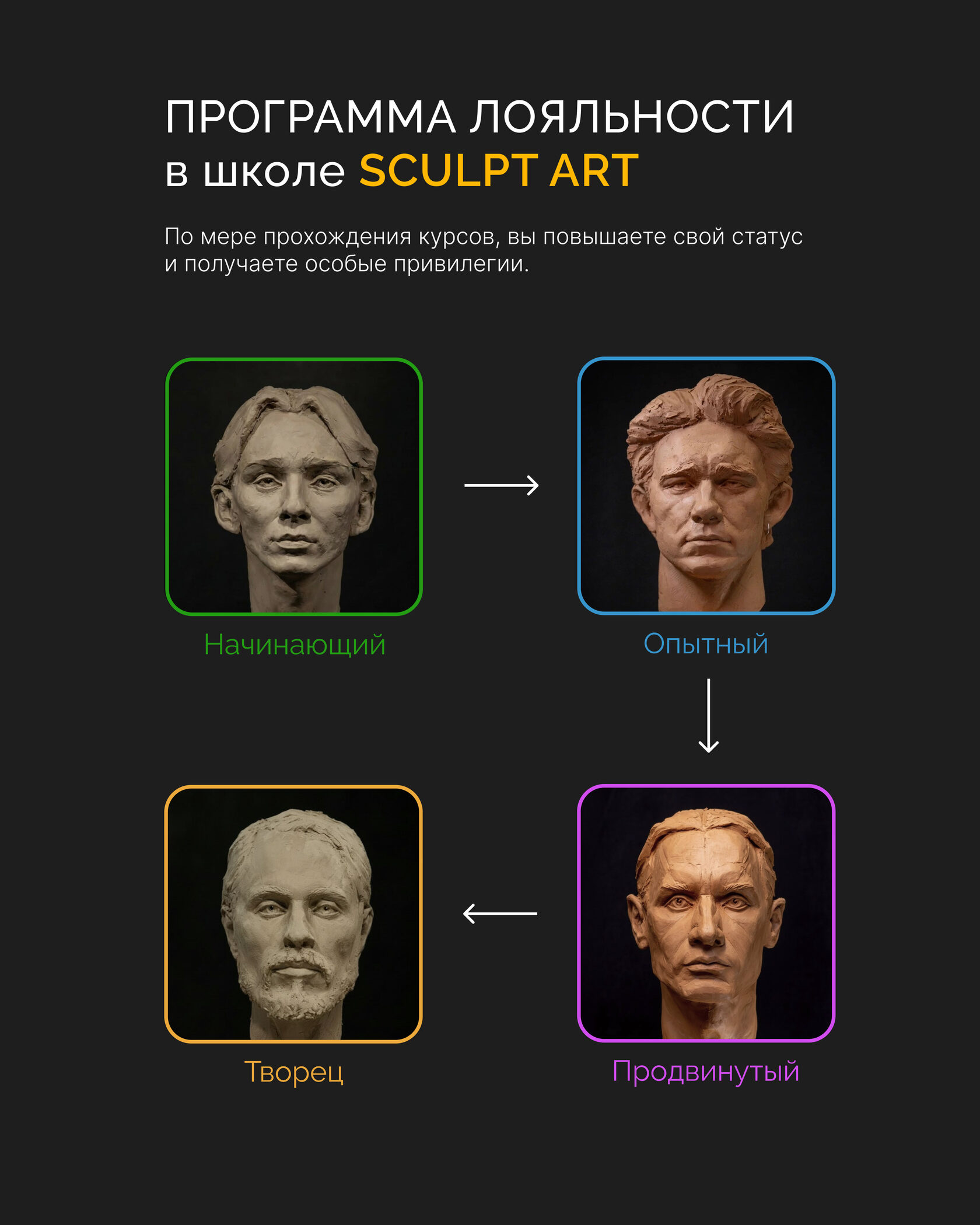 - Чтобы стать участником программы лояльности и получить статус необходимо заполнить анкету по ссылке https://sbsite.pro/st/Sculpt_Art.