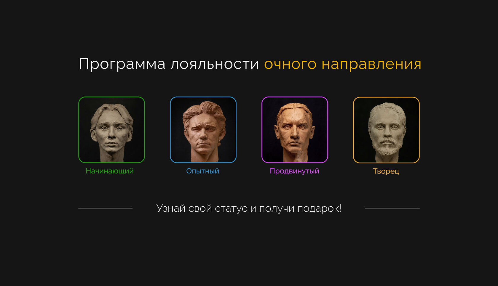 - Чтобы стать участником программы лояльности и получить статус необходимо заполнить анкету по ссылке https://sbsite.pro/st/Sculpt_Art.