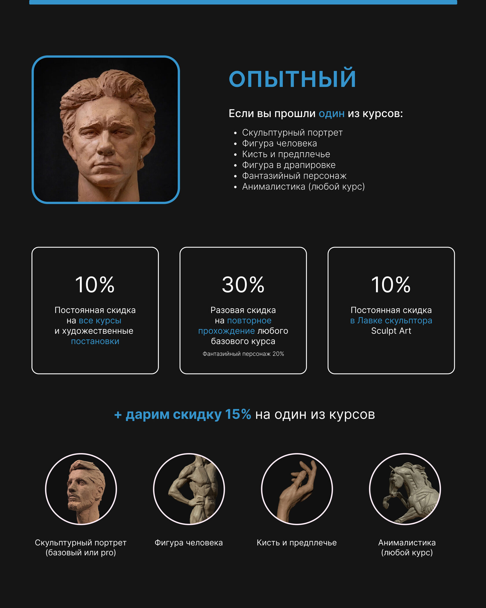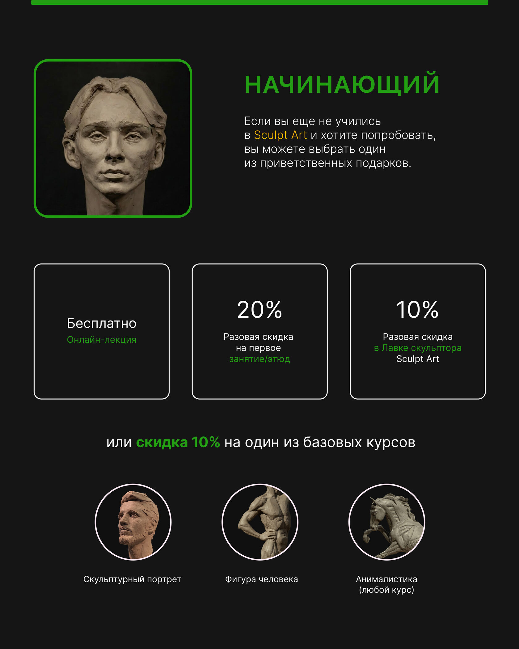 - Скидки, действующие ранее в Sculpt Art, прекращают своё действие 30 сентября 2025г.