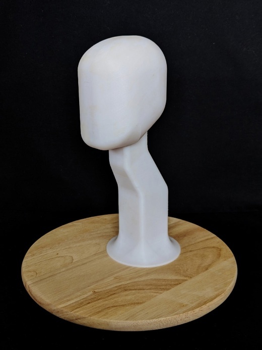 Сборный портретный каркас для среднеформатных работ. Спроектирован для печати на 3D-принтере. Высота каркаса удобна для проработки шеи, а форма болванки позволяет материалу лучше держаться за его стенки.